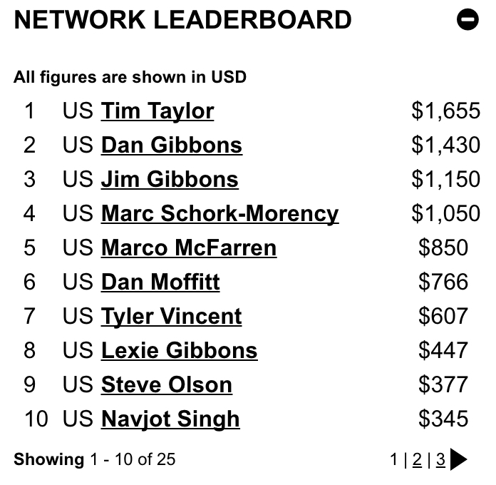 As always, here’s the network leaderboard of individual fundraising…